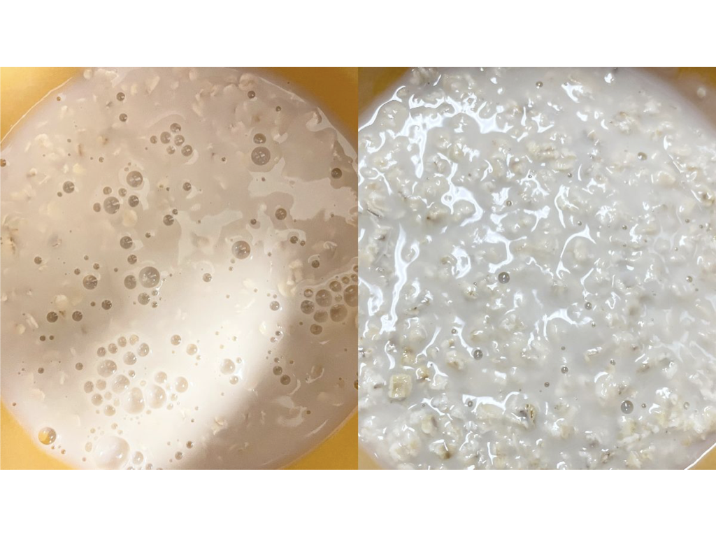 (左:牛乳を注いだ直後、右:一晩置いたあと)